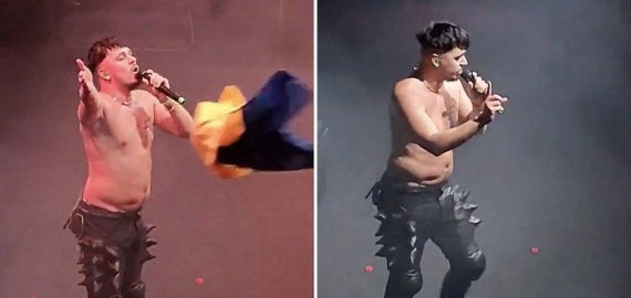 Представитель Финляндии на «Евровидении-2023» Käärijä на днях дал концерт, во время которого произошел неприятным момент. Фанаты передали ему на сцену сине-желтый флаг, однако артист швырнул его под стол и начал кричать: «Нет-нет-нет».